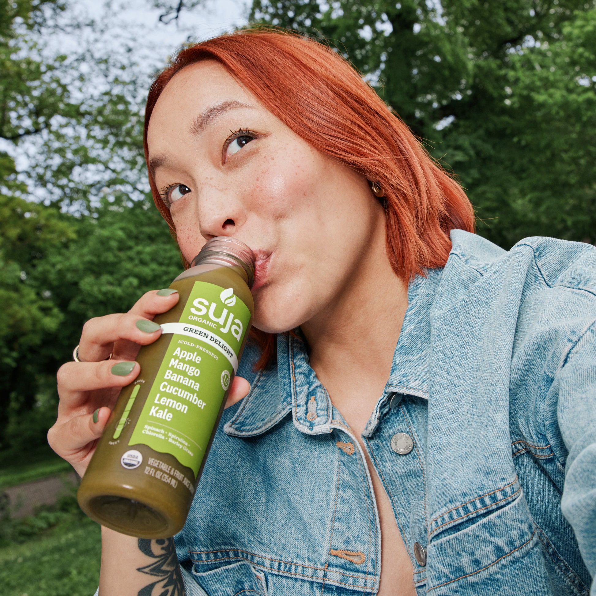 Your Suja Organic online order will be shipped in 12 oz bottles. All other sizes shown here can be found in store.